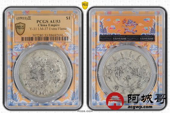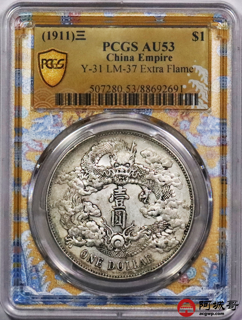 Lot:15 原味 底光 大清宣三壹元 PCGS AU53