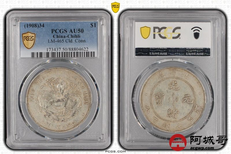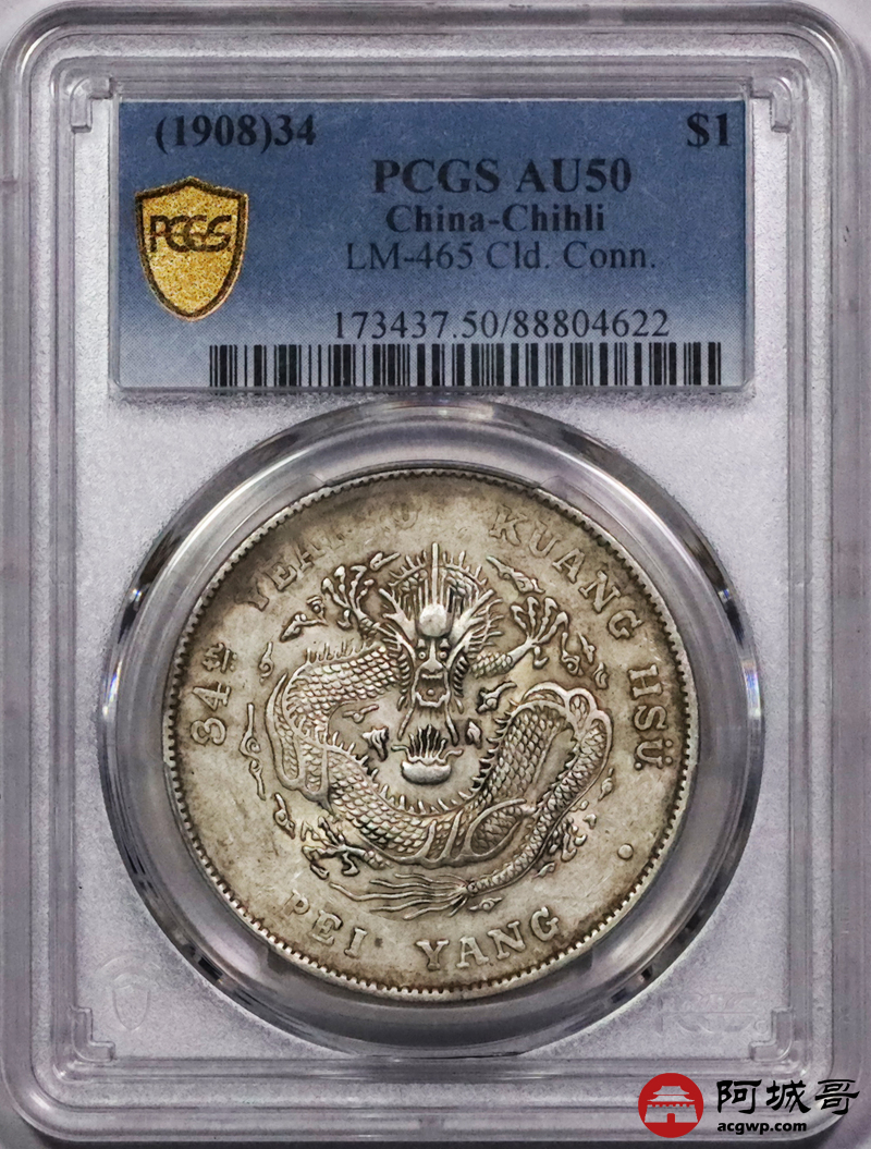 Lot:14 原味 底光 北洋34年七钱二分 PCGS AU50