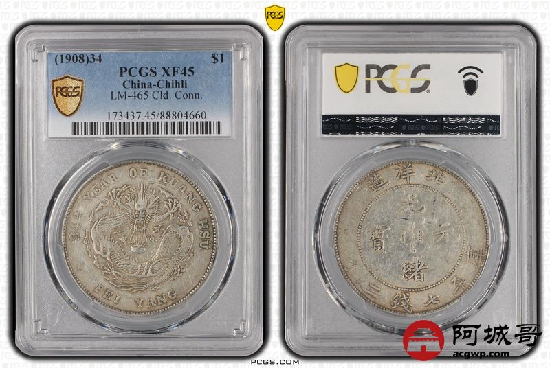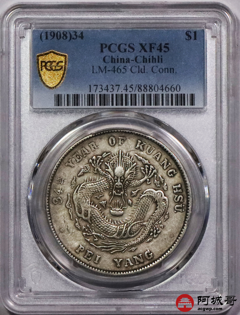 Lot:17 原味 北洋34年七钱二分 PCGS XF45