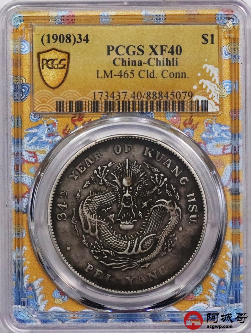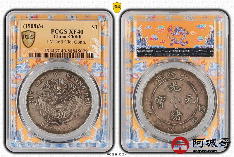 Lot:11 原汁原味满龙鳞北洋34年七钱二分 开云版 PCGS XF40