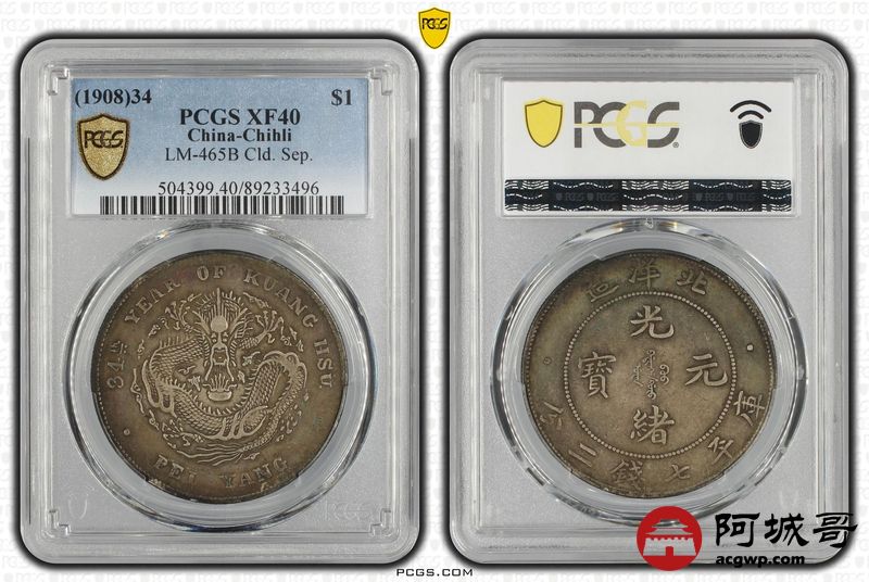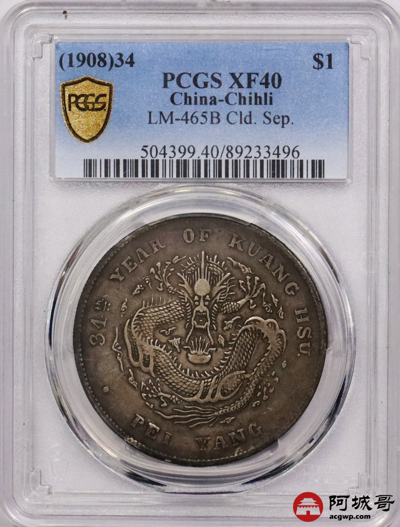 Lot:16 酱彩包浆 北洋34年七钱二分 开云版 PCGS XF40