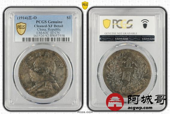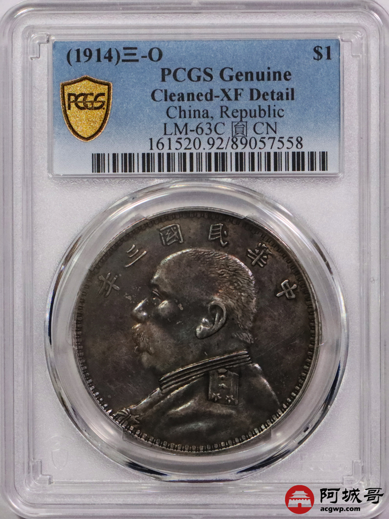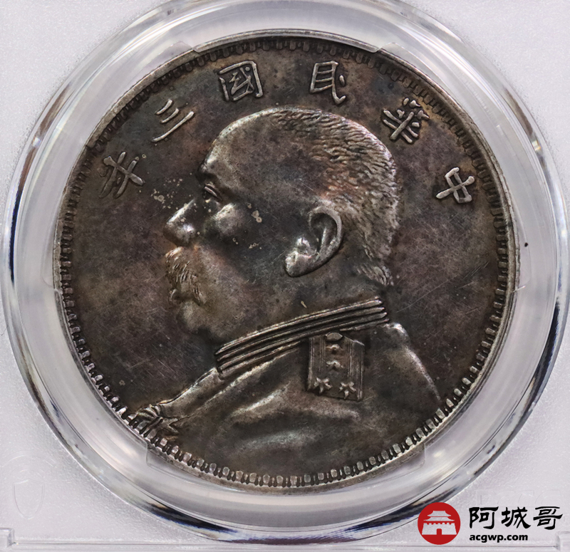 Lot:30 民国三年大头壹元 O版三角元 五彩包浆 PCGS XF