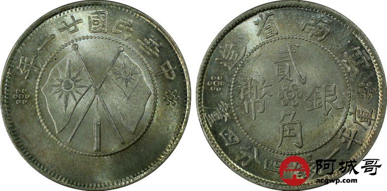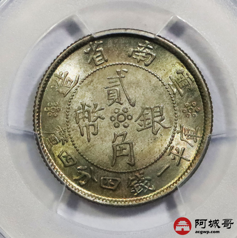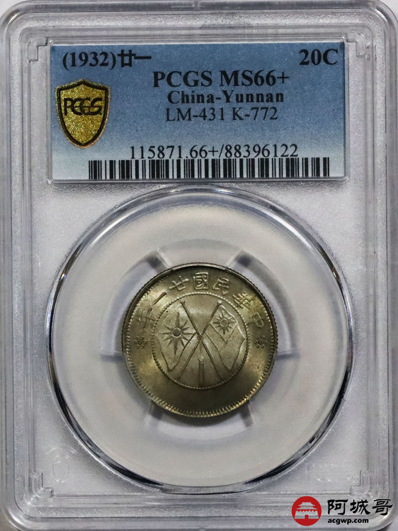 Lot:18 全深打五彩转光 味道一流云南双旗贰角 PCGS MS66+