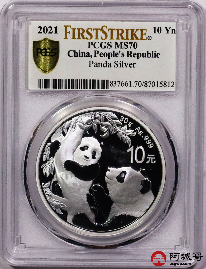 Lot:21 2021熊猫10元一盎司银币 PCGS MS70