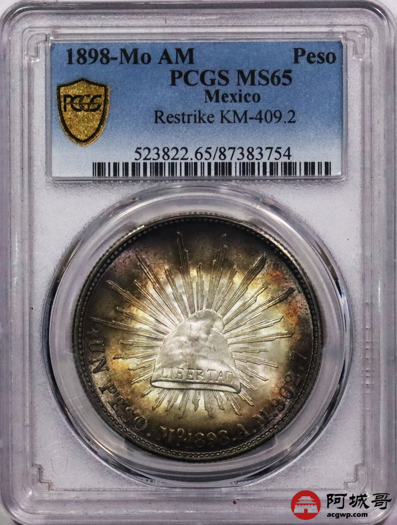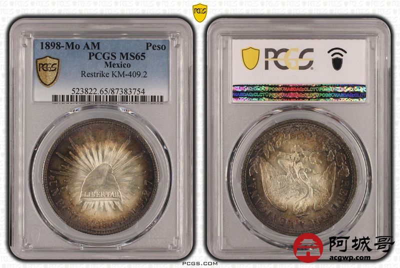 Lot:33 环彩 转光 1898年墨西哥鹰洋 PCGS MS65