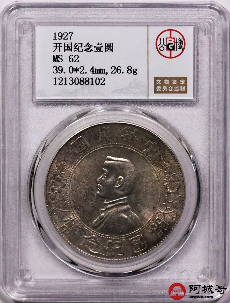 Lot:14 开国纪念币小头 原汁原味 公博评级 MS62