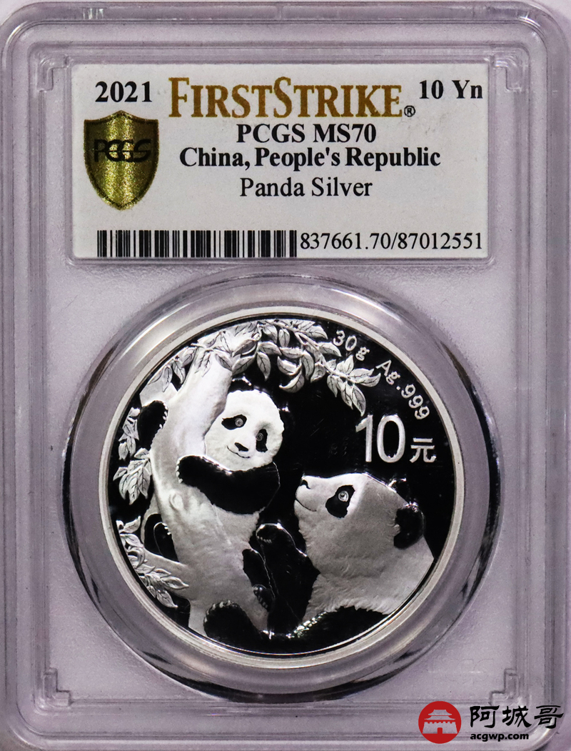 Lot:34 2021年熊猫10元银币PCGS MS70