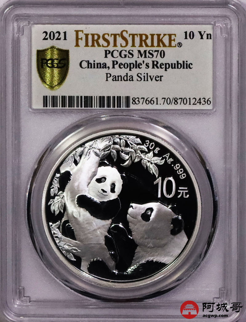 Lot:49 2021年熊猫10元银币PCGS MS70