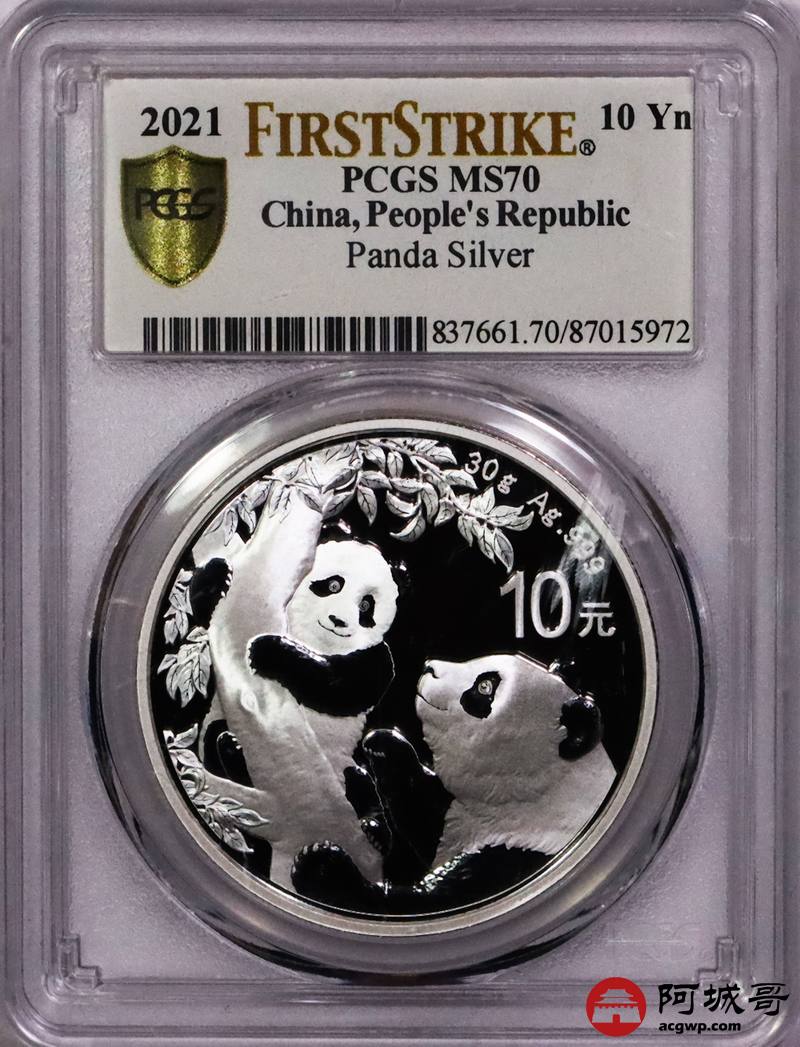 Lot:38 2021年熊猫10元银币PCGS MS70