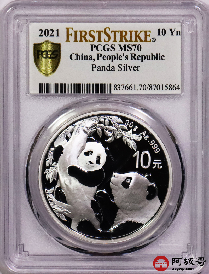 Lot:28 2021年熊猫10元银币PCGS MS70