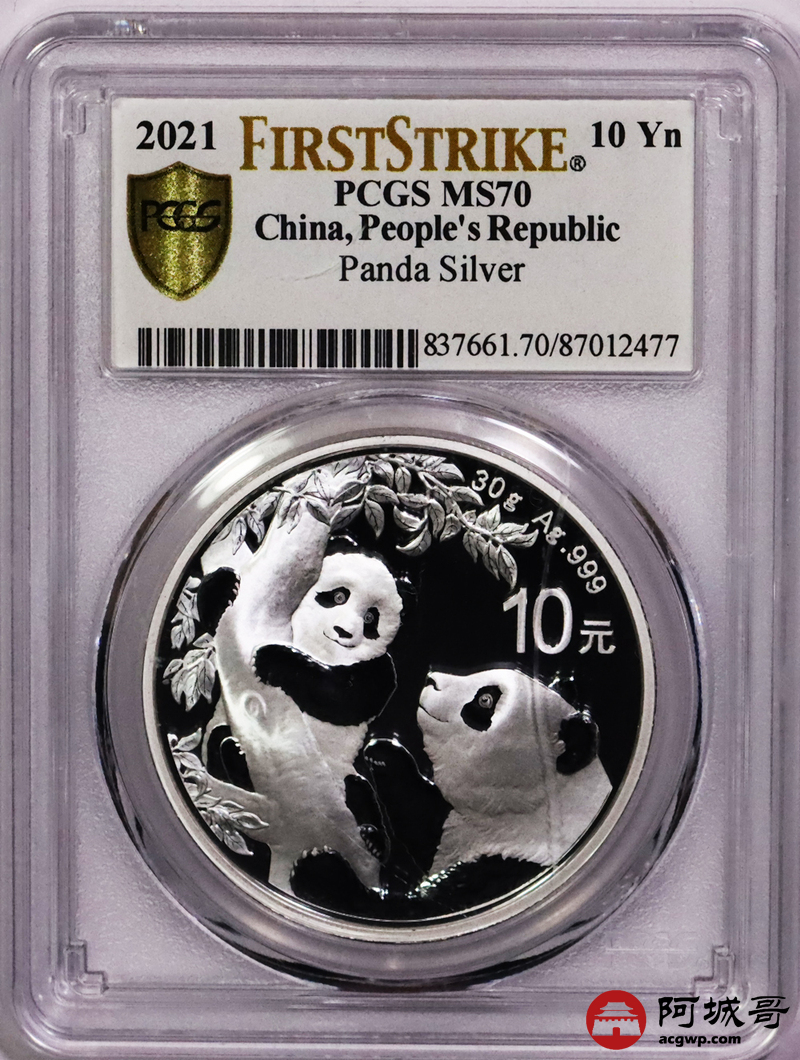 Lot:39 2021年熊猫10元银币PCGS MS70