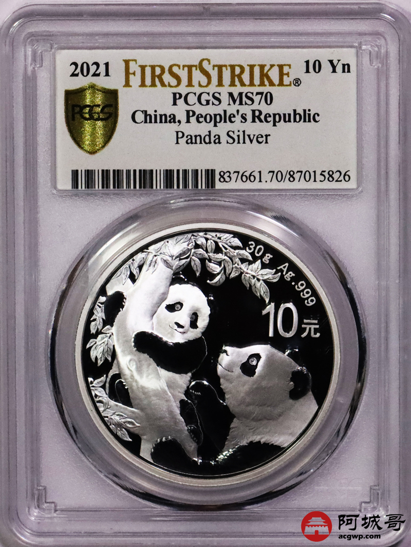 Lot:50 2021年熊猫10元银币PCGS MS70