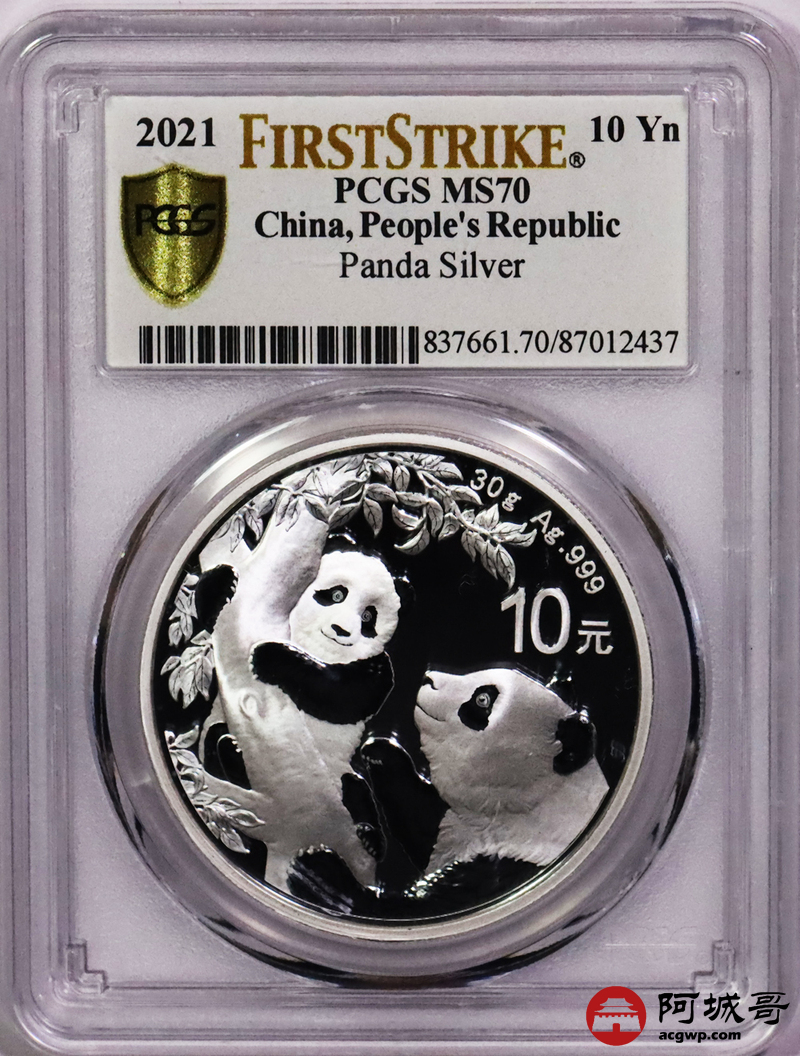 Lot:46 2021年熊猫10元银币PCGS MS70