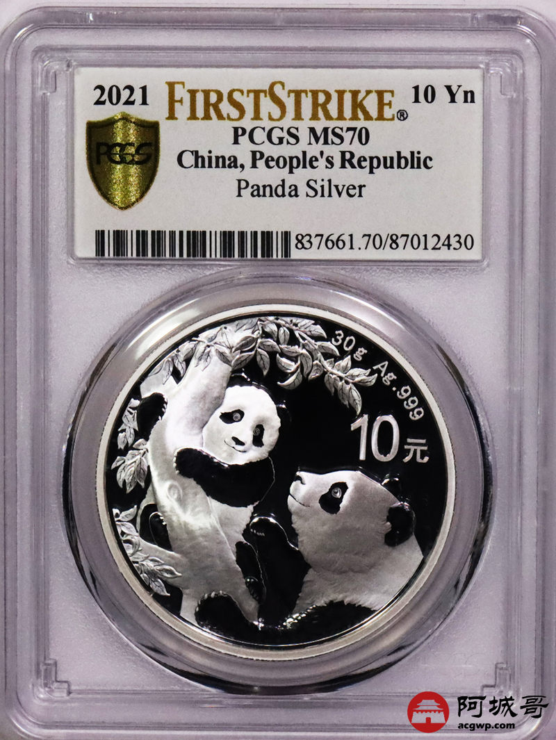 Lot:30 2021年熊猫10元银币PCGS MS70
