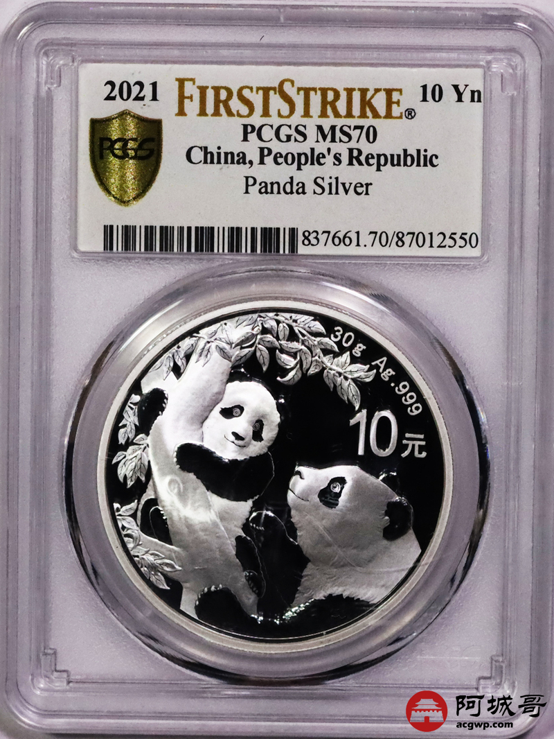 Lot:41 2021年熊猫10元银币PCGS MS70