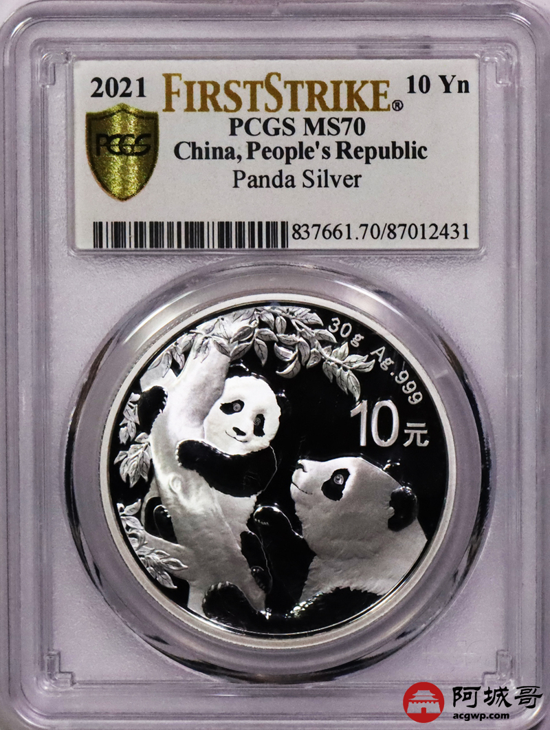 Lot:42 2021年熊猫10元银币PCGS MS70