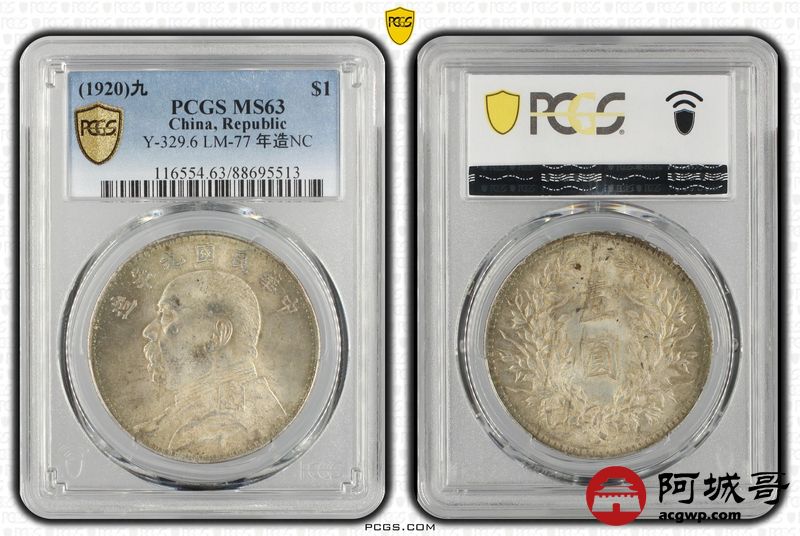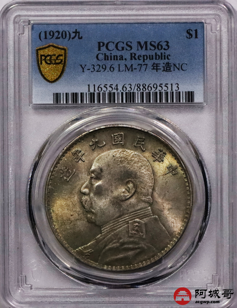 Lot:43 淡彩原光 九年粗发壹圆 PCGS MS63