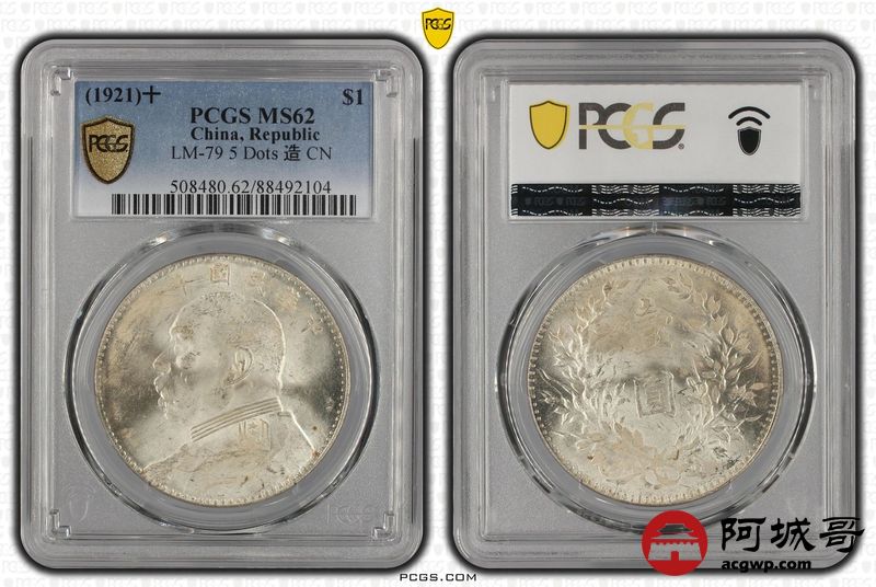Lot:34 原光 十年大头 八年背下五珠 PCGS MS62