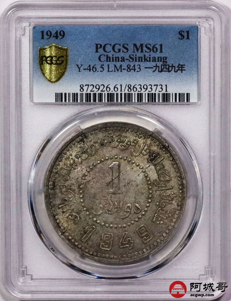 Lot:null 粉光 深打 新疆双1949壹圆 PCGS MS61