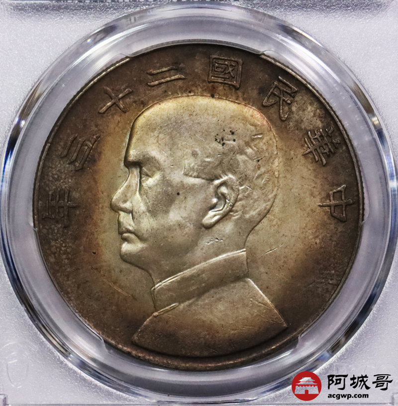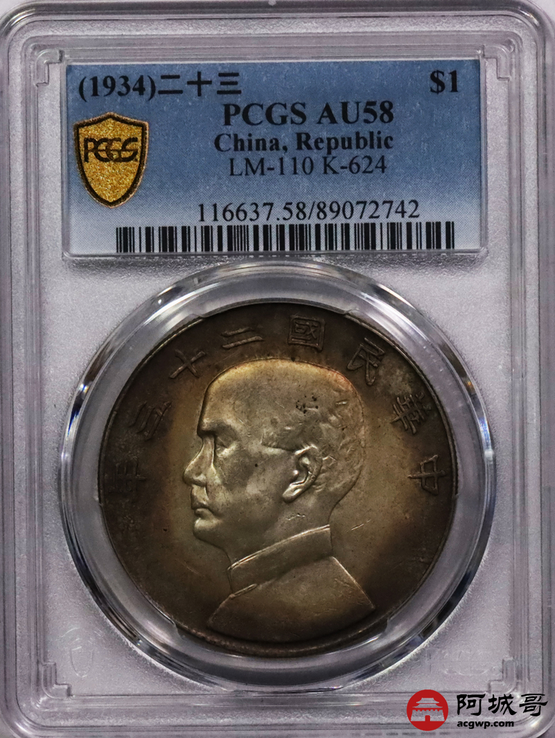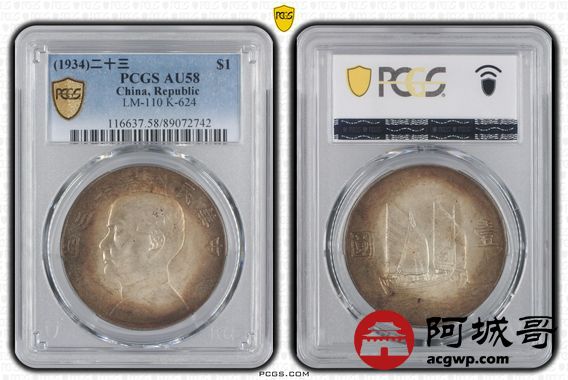 Lot:31 环五彩包浆 民国23年船洋壹圆 PCGS AU58