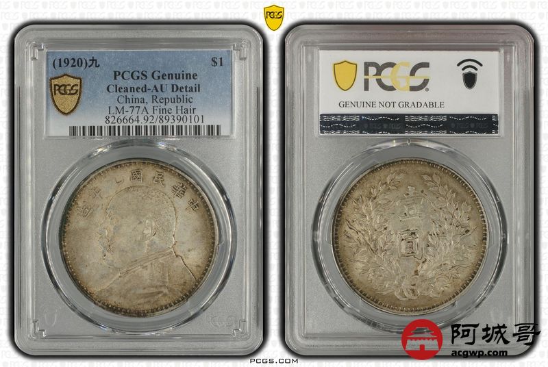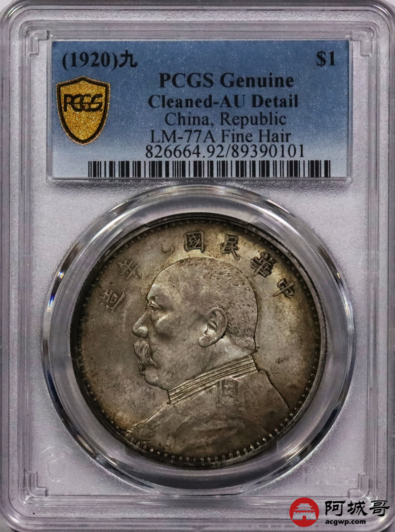 Lot:39 原味 底光 九年精发大头壹圆 PCGS AU