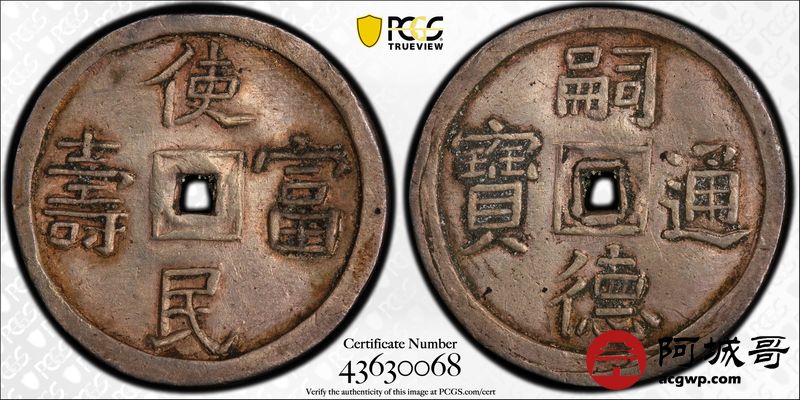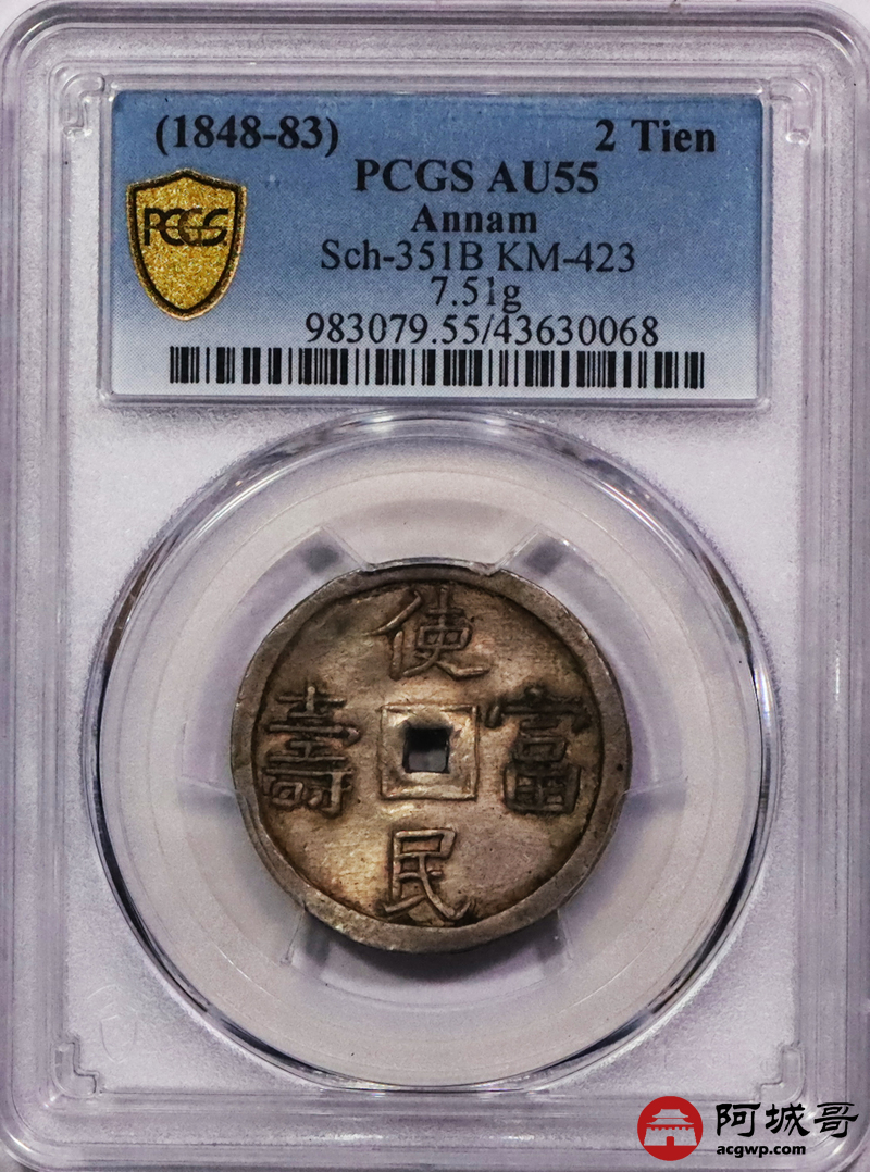 Lot:37 1848-83越南使民富寿 嗣德通宝银质花钱 PCGS AU55