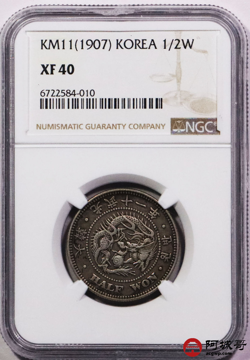 Lot:10 包浆 韩国 光武11年 半圆 NGC XF40