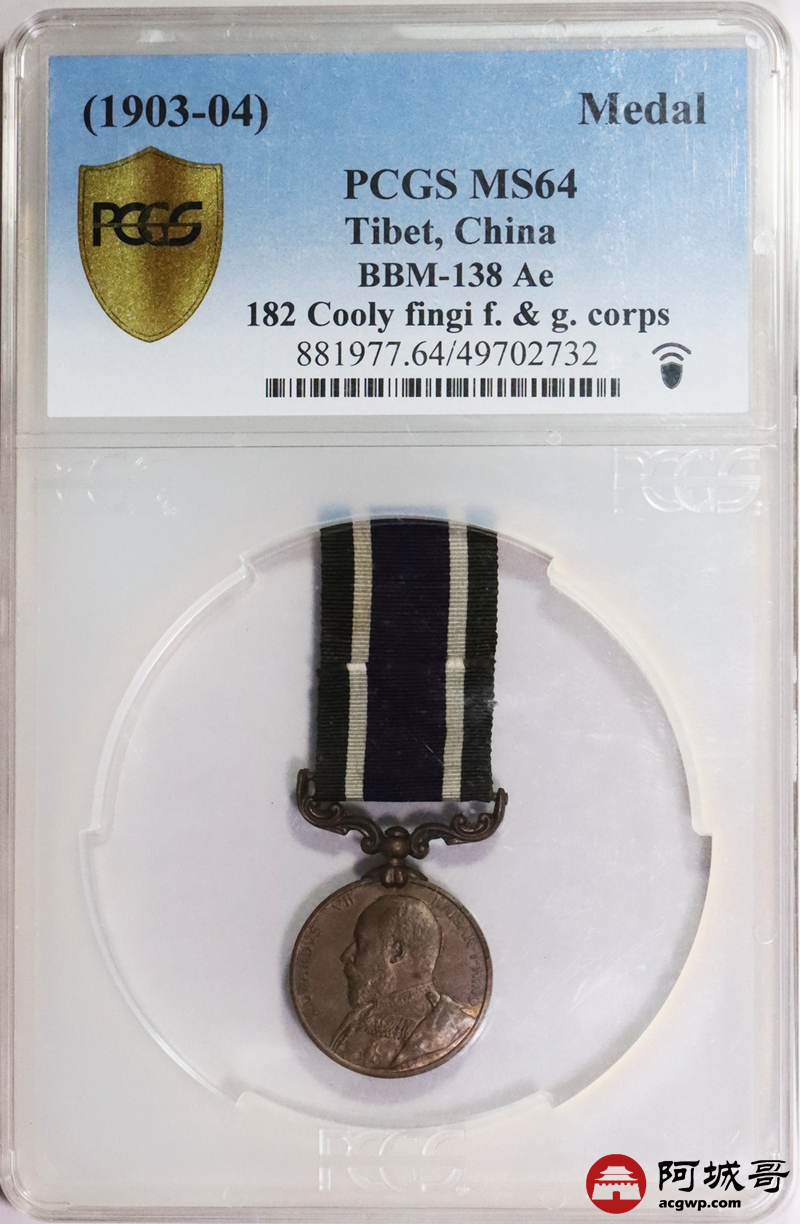 Lot:6 1903年西藏战役铜章 爱德华七世配布达拉宫完整配绶带唯一冠军分 PCGS MS64