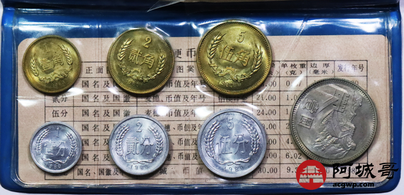 Lot:2 1980长城币蓝皮天王本状态好 轻微氧化