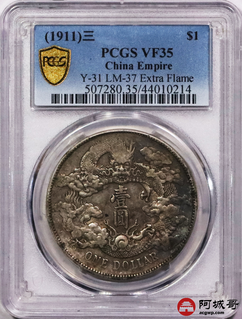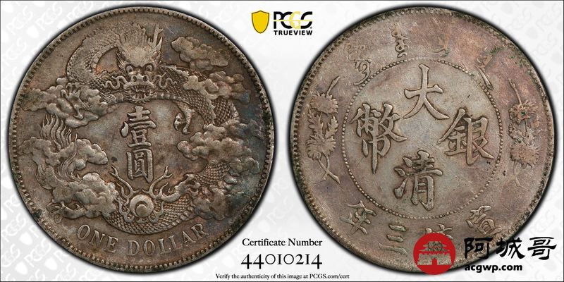 Lot:19 原味 深打 大清宣三壹圆 PCGS VF35