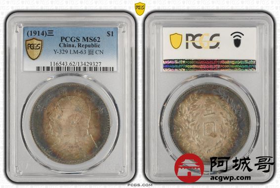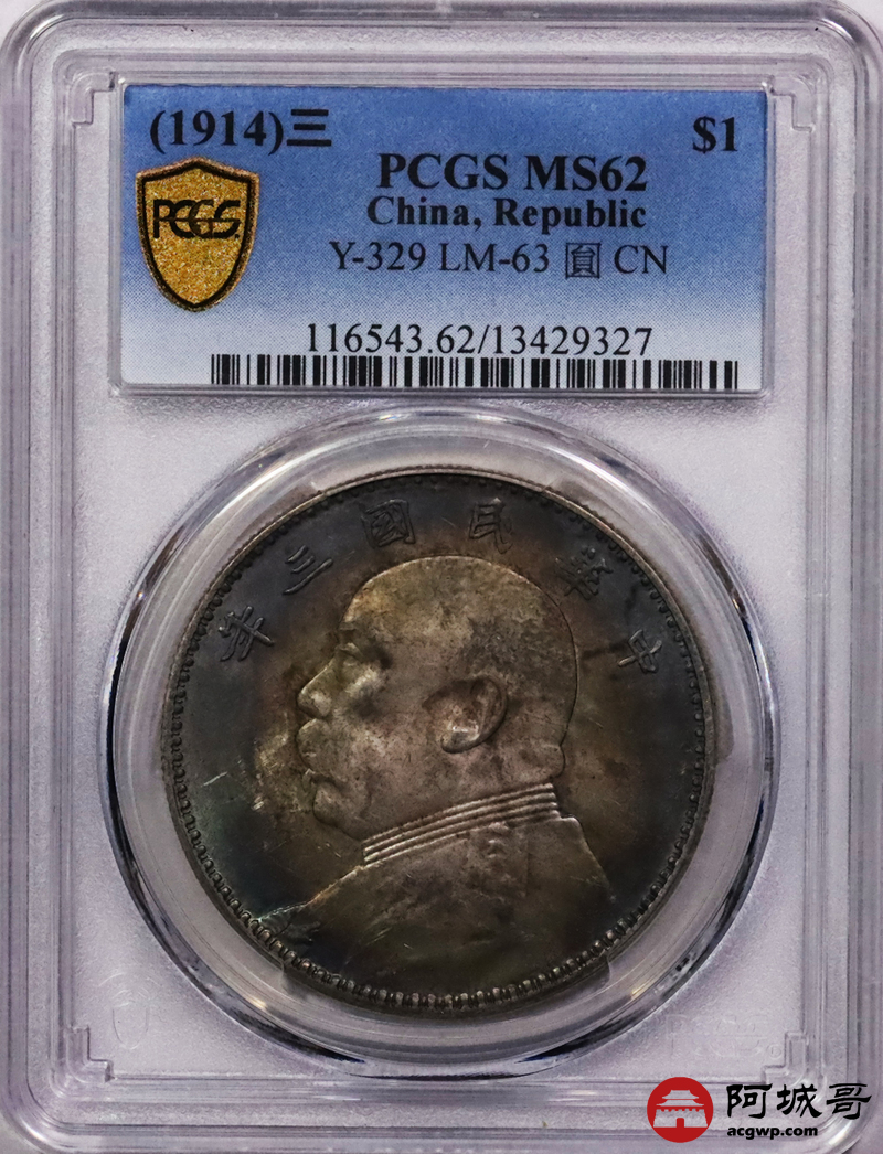Lot:30 原光 五彩包浆 三年大头壹圆 PCGS MS62