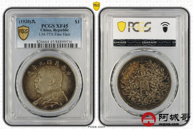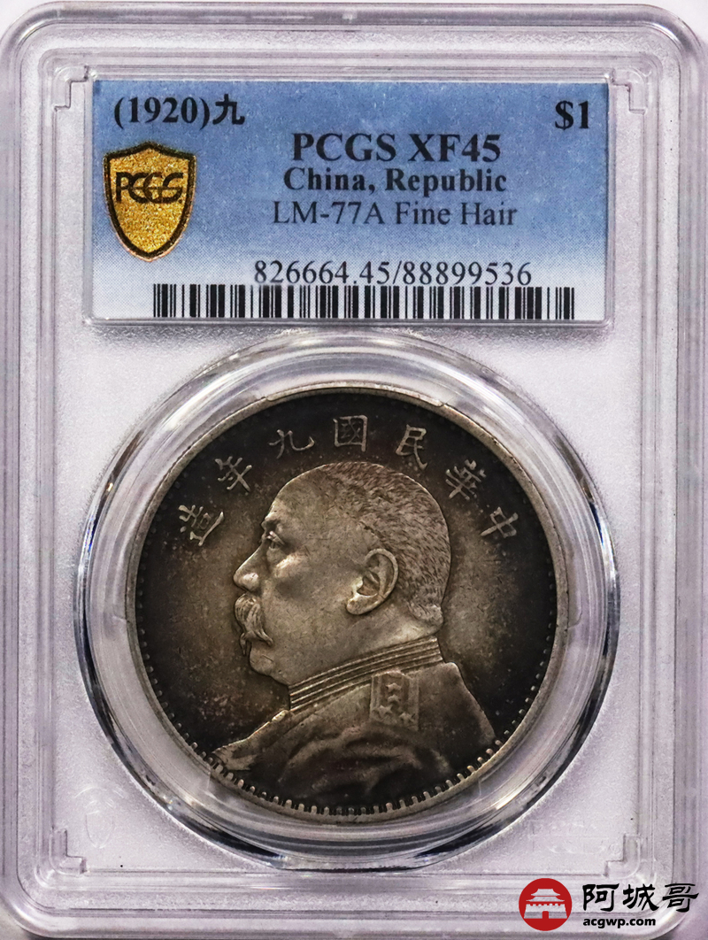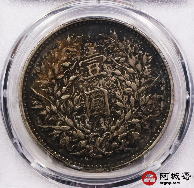Lot:25 酱彩包浆 九年精发大头壹圆 PCGS XF45