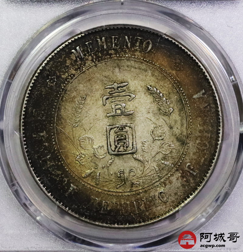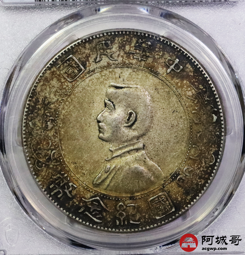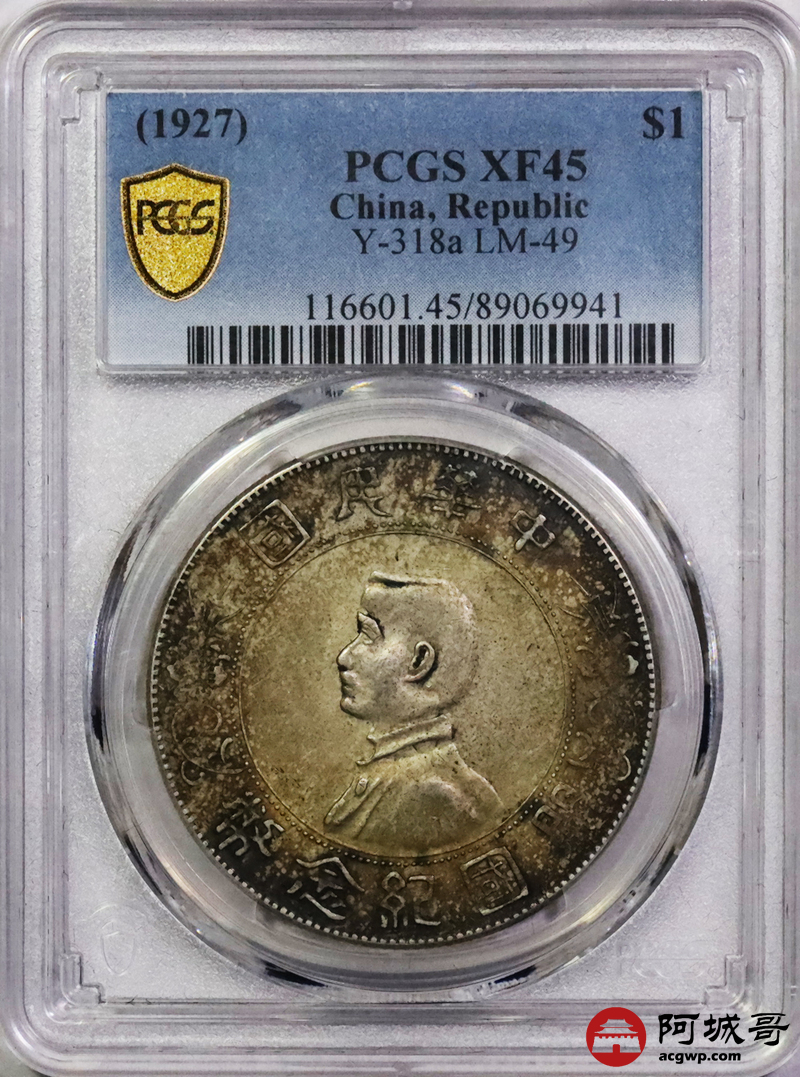 Lot:5114 1927孙中山像开国纪念壹圆银币一枚,原味深打,酱环彩底板 PCGS XF45评级编号:89069941