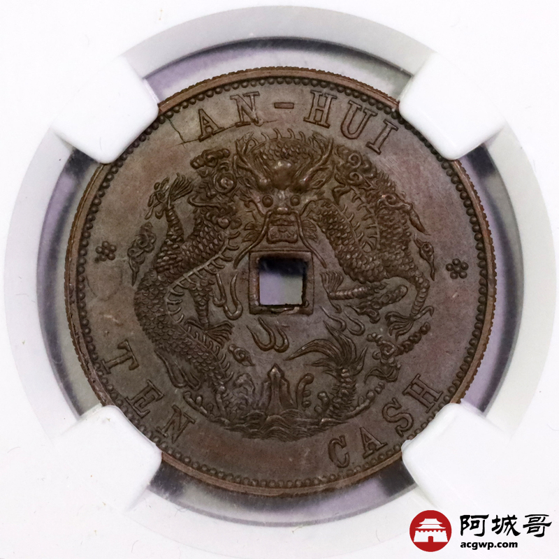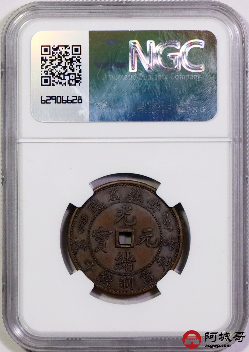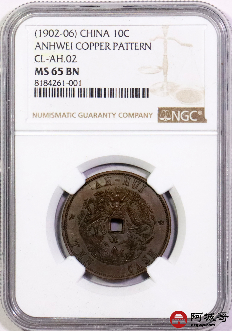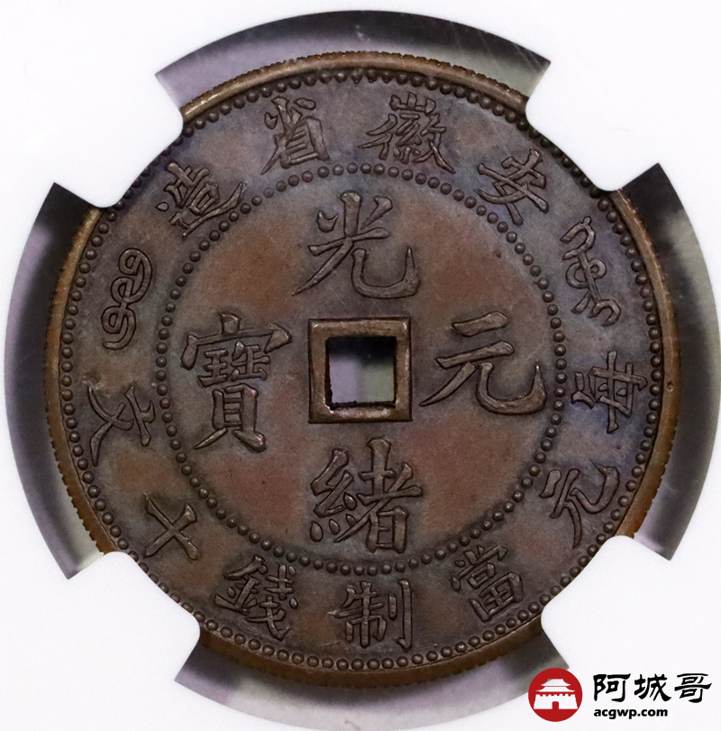Lot:null 1902-06安徽省造光绪元宝当制十文铜样一枚,铜色纯正,龙图字口铸打深俊,状态一流 NGC MS65BN