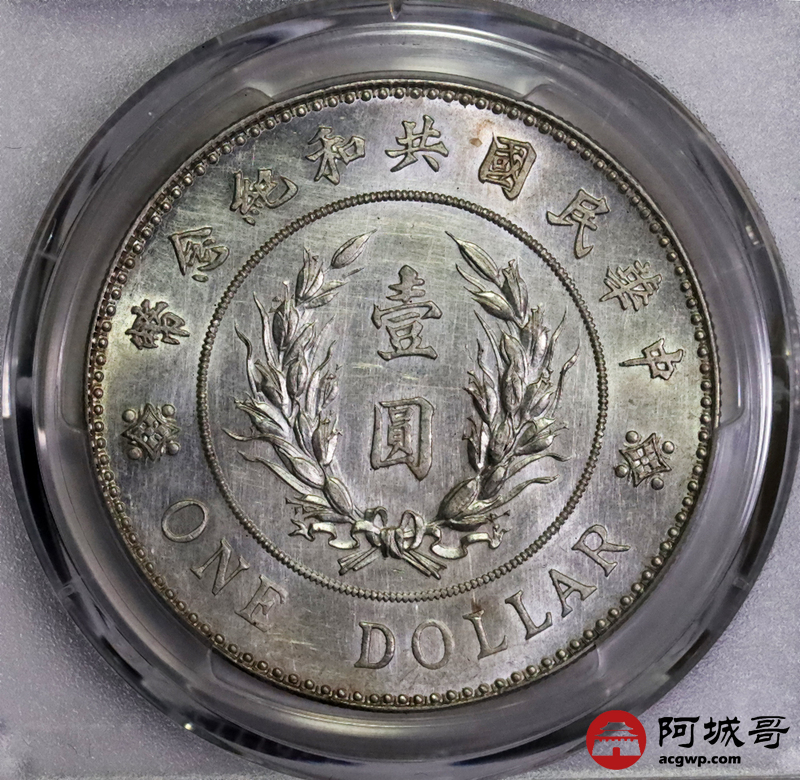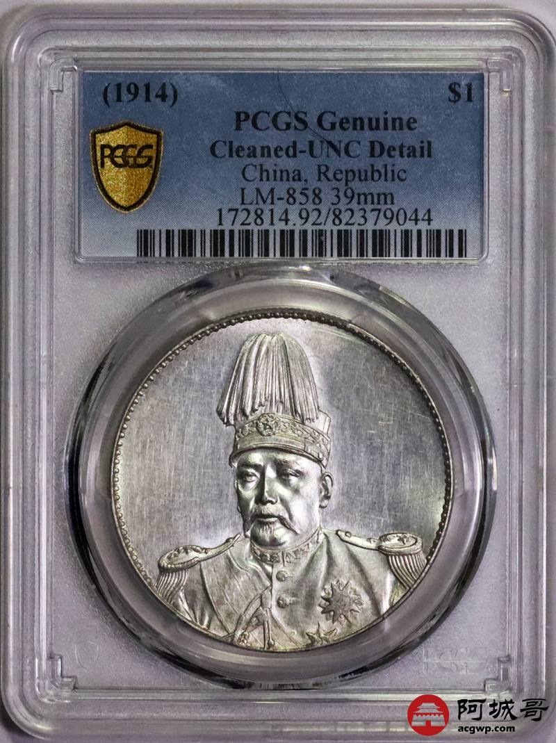 Lot:null 1914年袁世凯像共和纪念壹圆银币一枚,鼻梁坚挺,底板光度十足 PCGS UNC92 评级编号:82379044