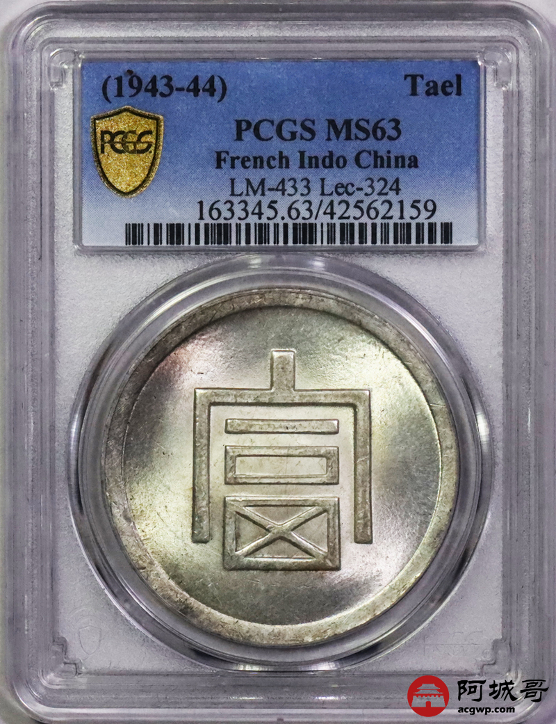 Lot:5406 1943-44云南省造富字一两正银银币一枚,车轮粉光底板,状态一流 PCGS MS63评级编号:42562159