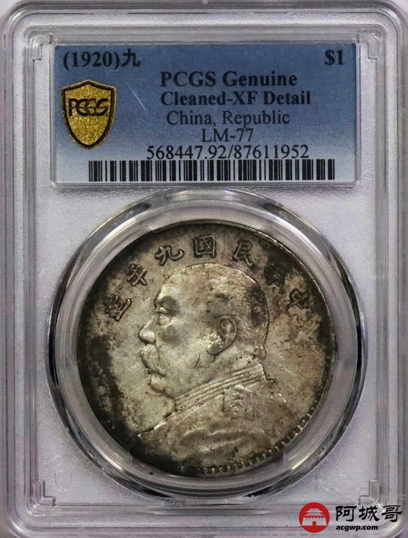 Lot:42 深打老包浆 九年粗发壹圆 PCGS XF