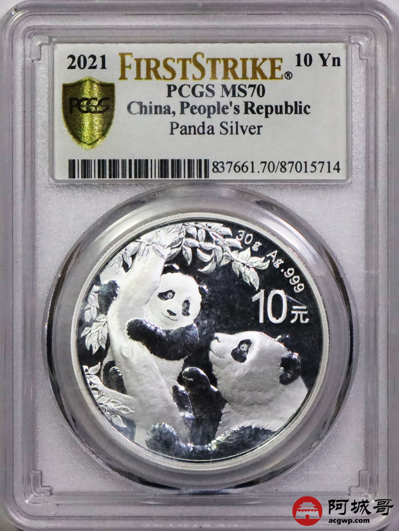 Lot:9 2021年熊猫10元银币PCGS MS70
