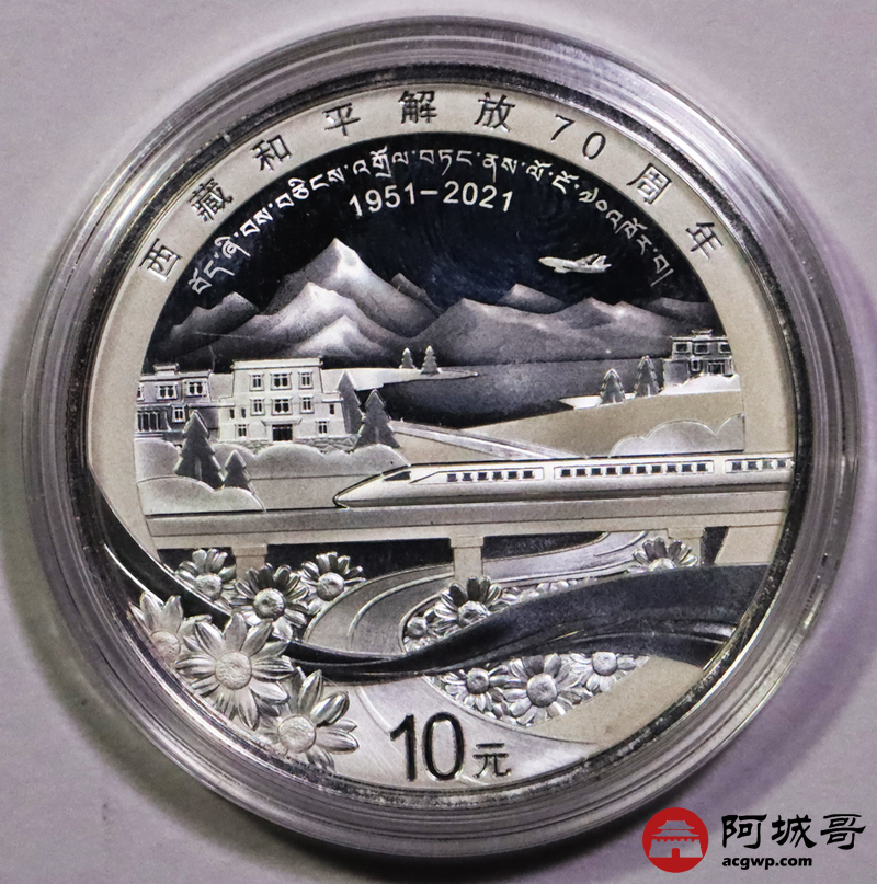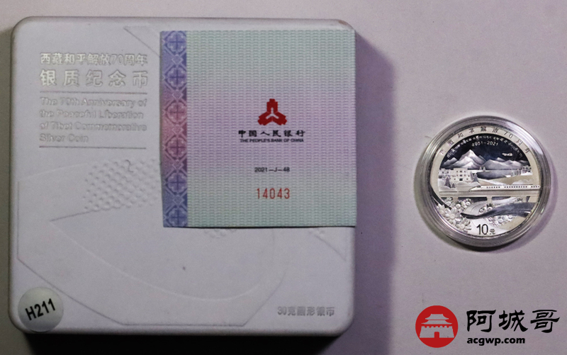 Lot:6 西藏和平解放70周年30克银质纪念币原盒带证