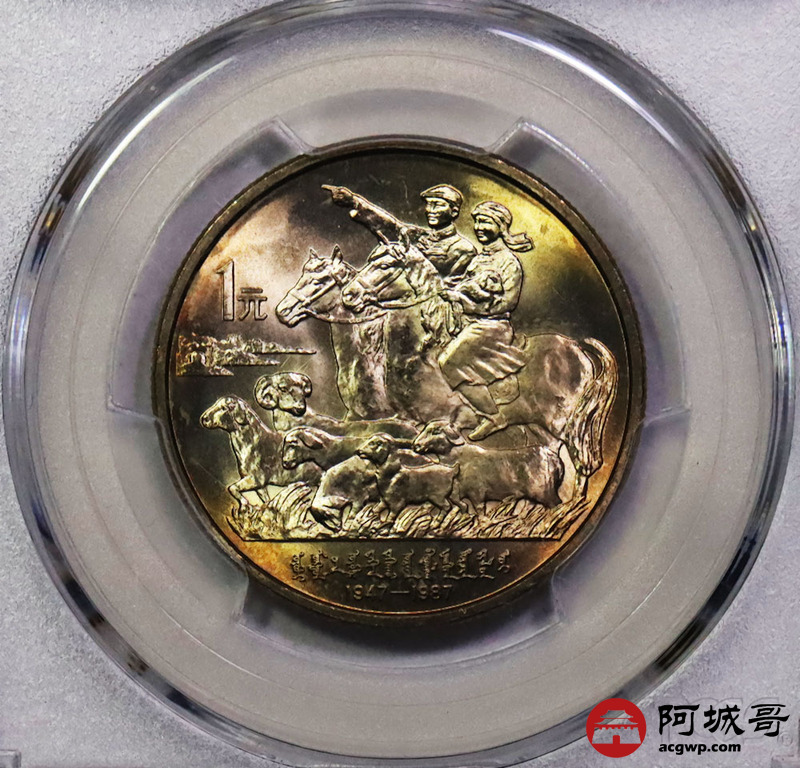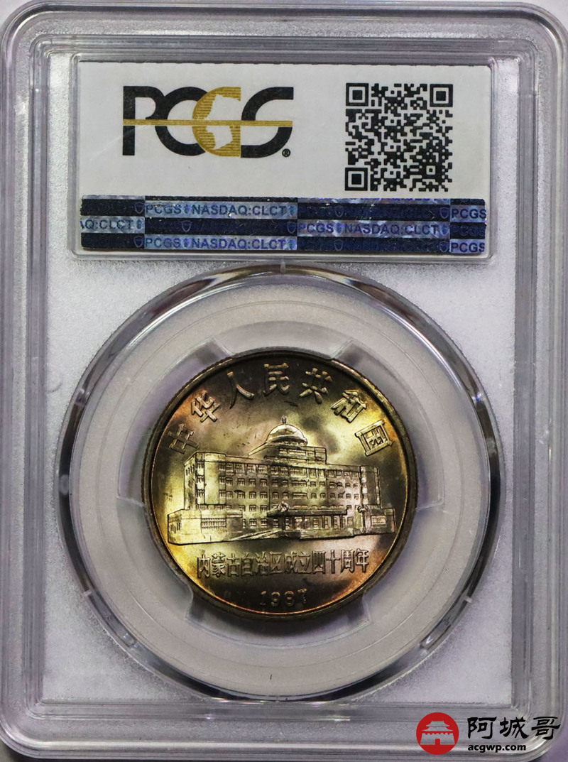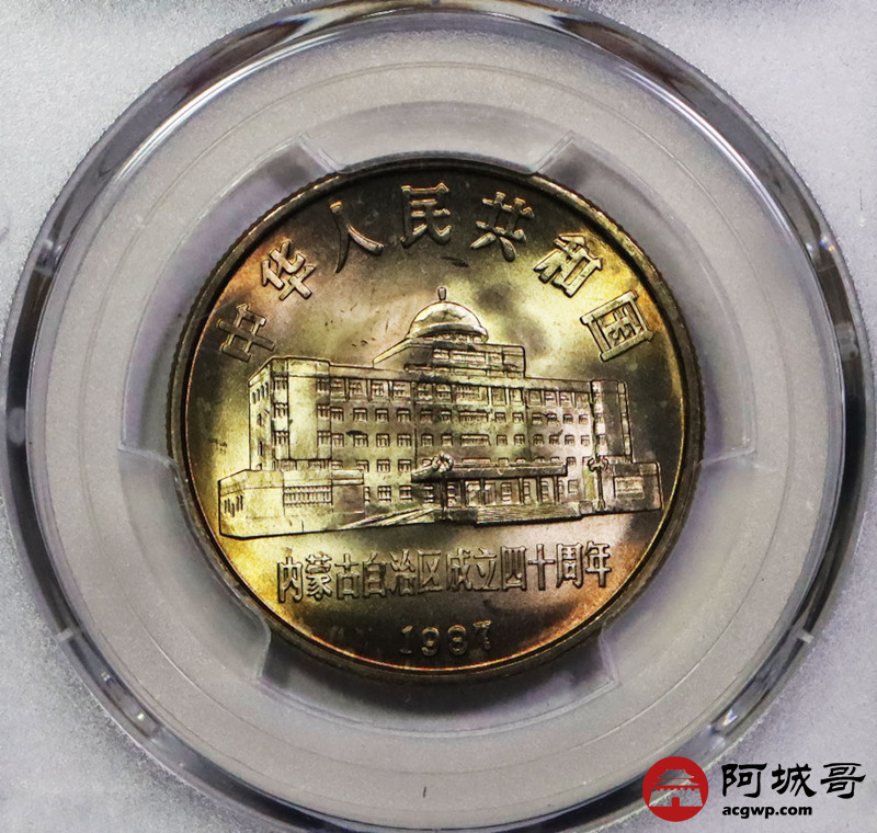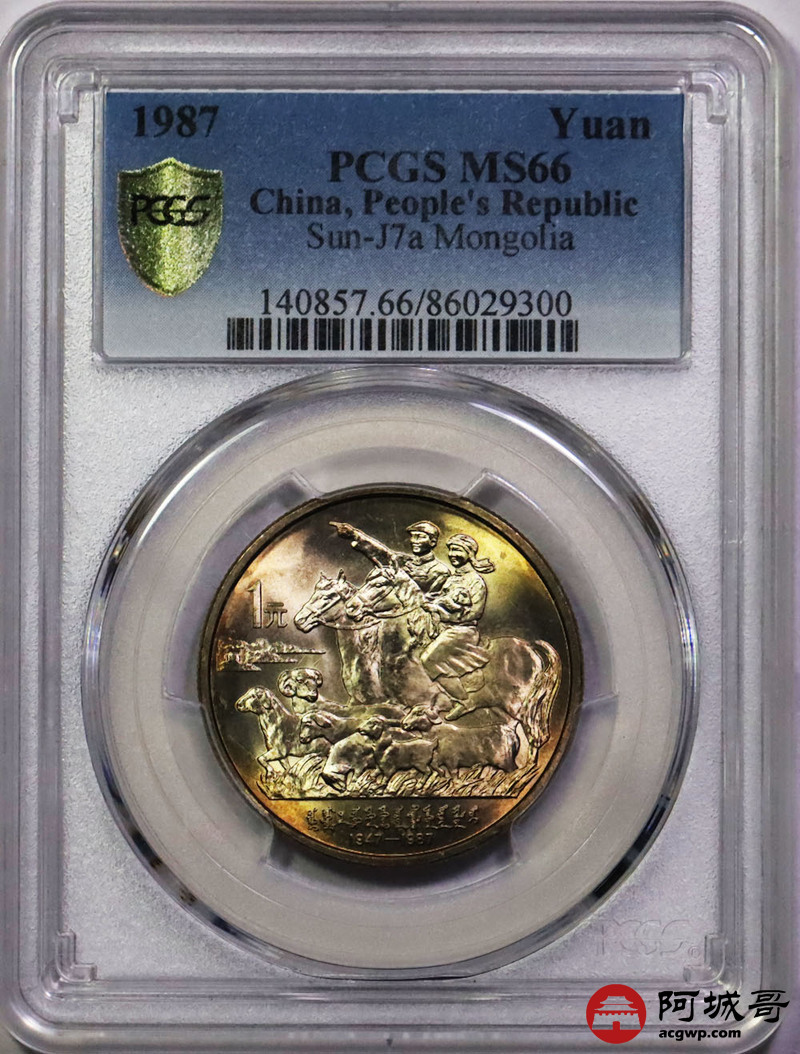 Lot:19 1987黄油彩 内蒙古自治区成立四十周年壹圆 PCGS MS66