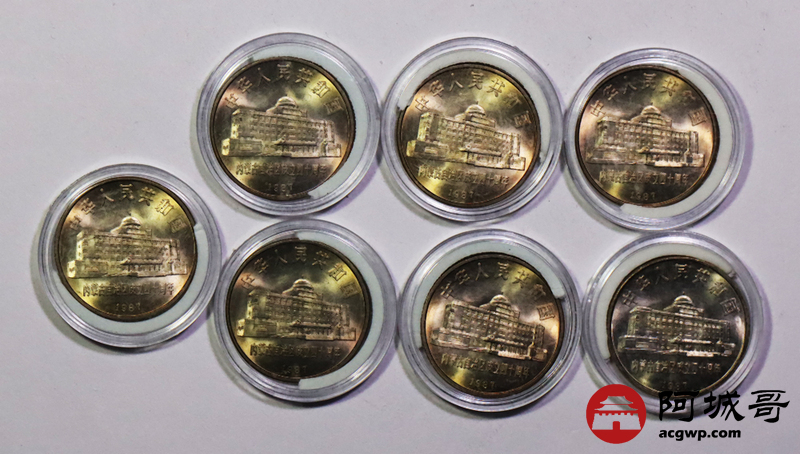 Lot:14 MS级开卷五彩1987年没蒙古自治区成立四十周年纪念币7枚