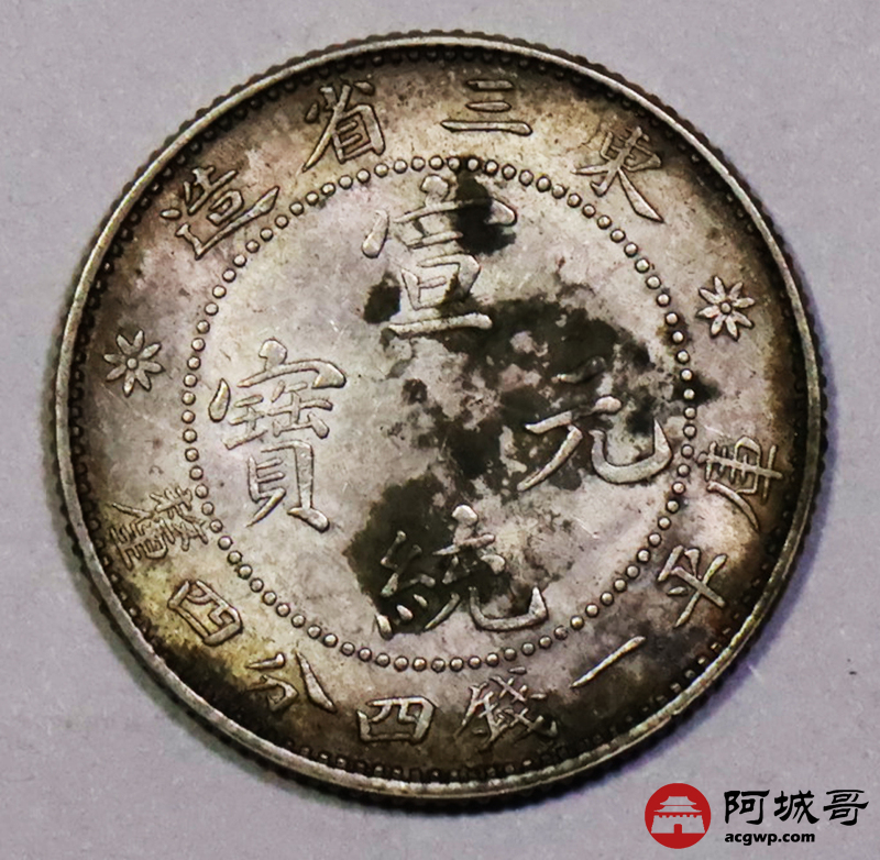 Lot:12 黄油原光 东三省宣统一钱四分四厘裸币一枚