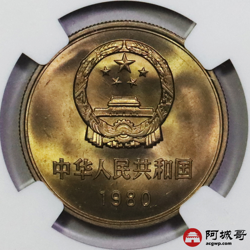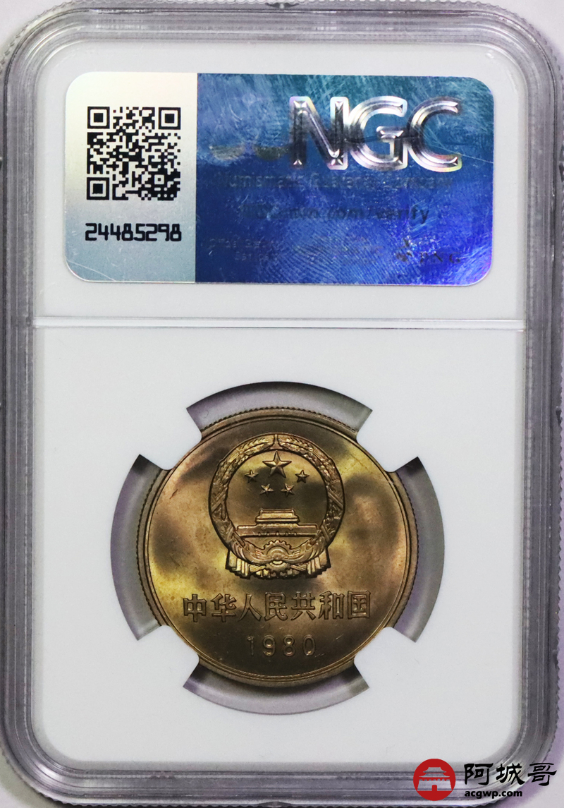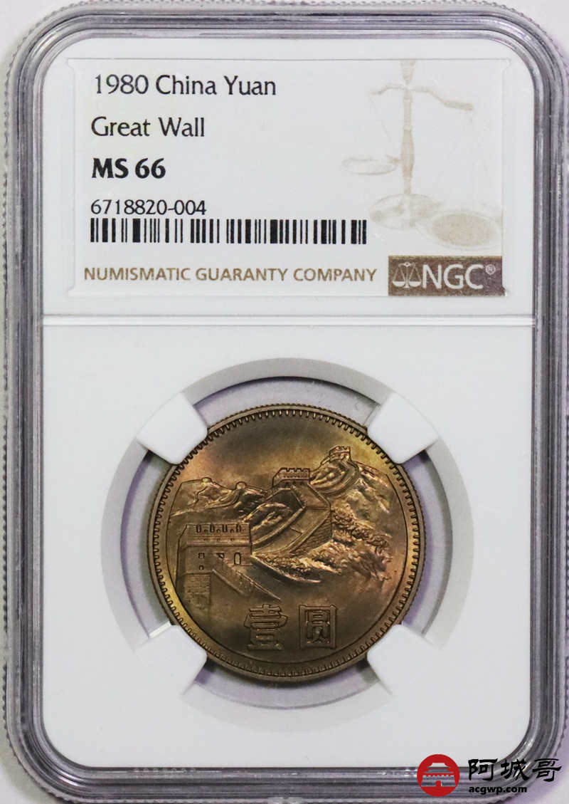 Lot:23 a黄油彩1980年长城币壹圆 NGC MS66