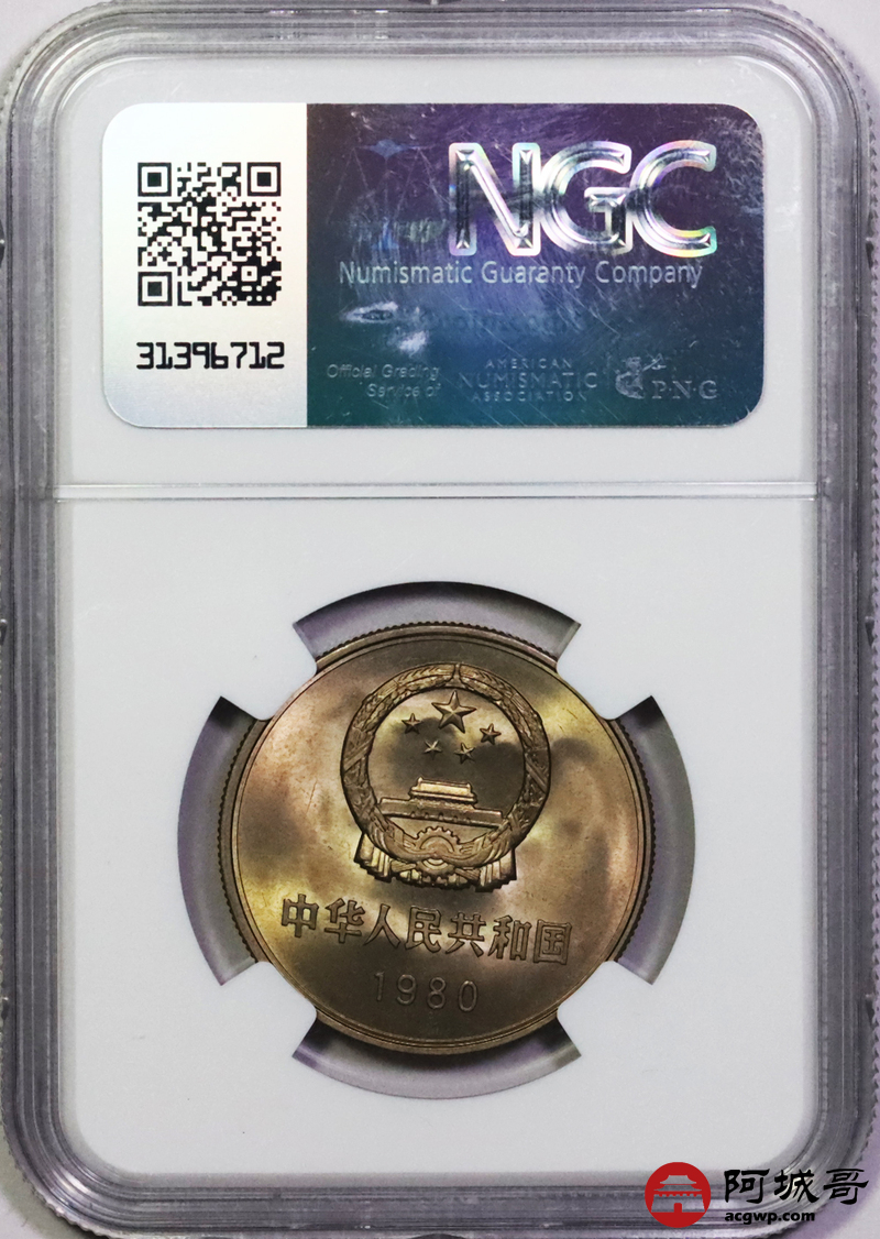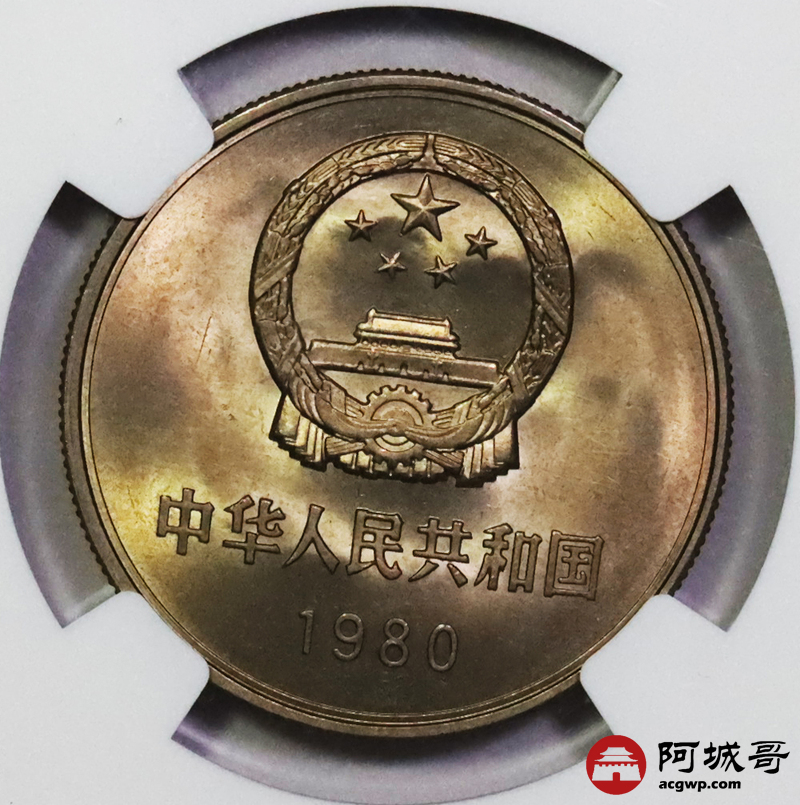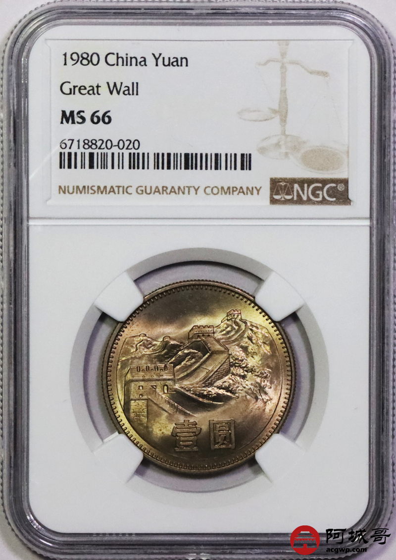 Lot:20 黄油彩1980年长城币壹圆 NGC MS66