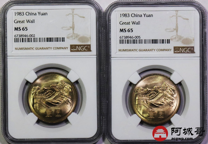 Lot:24 1983年长城币壹圆 NGC MS65 两枚一组