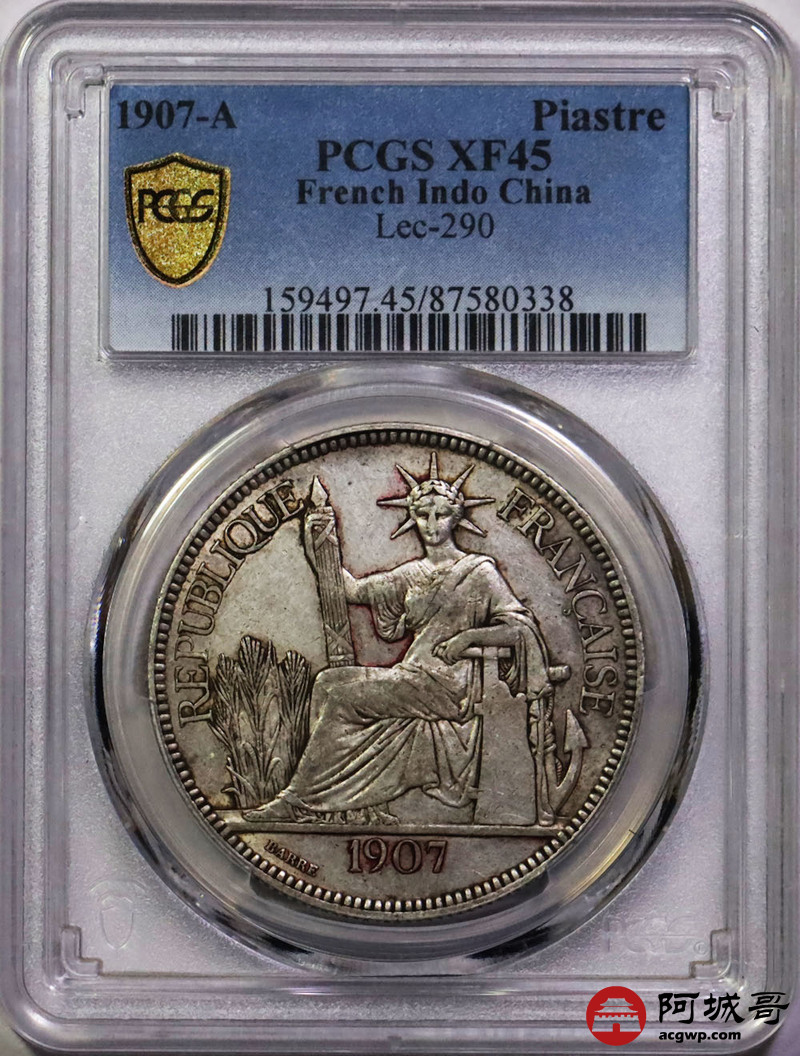 Lot:45 原味 包浆 1907坐洋壹圆 PCGS XF45