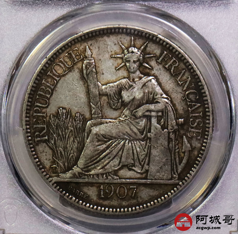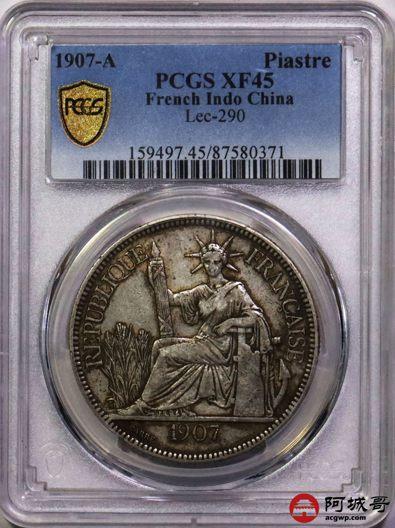 Lot:44 原味 包浆 1907坐洋壹圆 PCGS XF45
