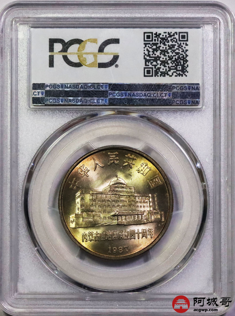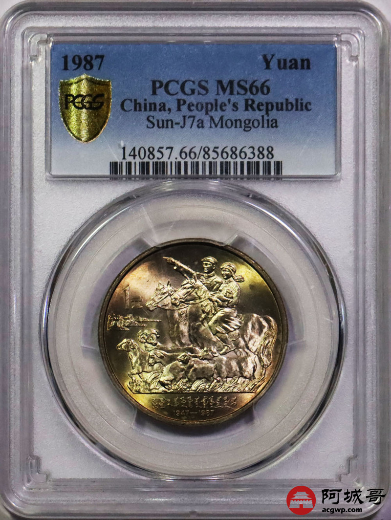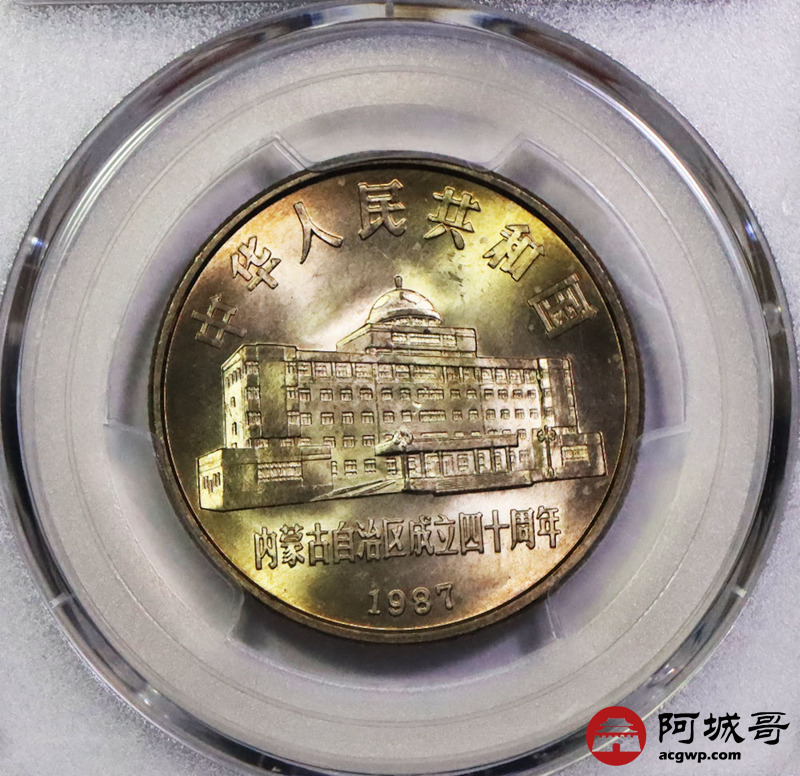 Lot:25 1987黄油原光内蒙古自治区成立四十周年纪念币 PCGS MS66
