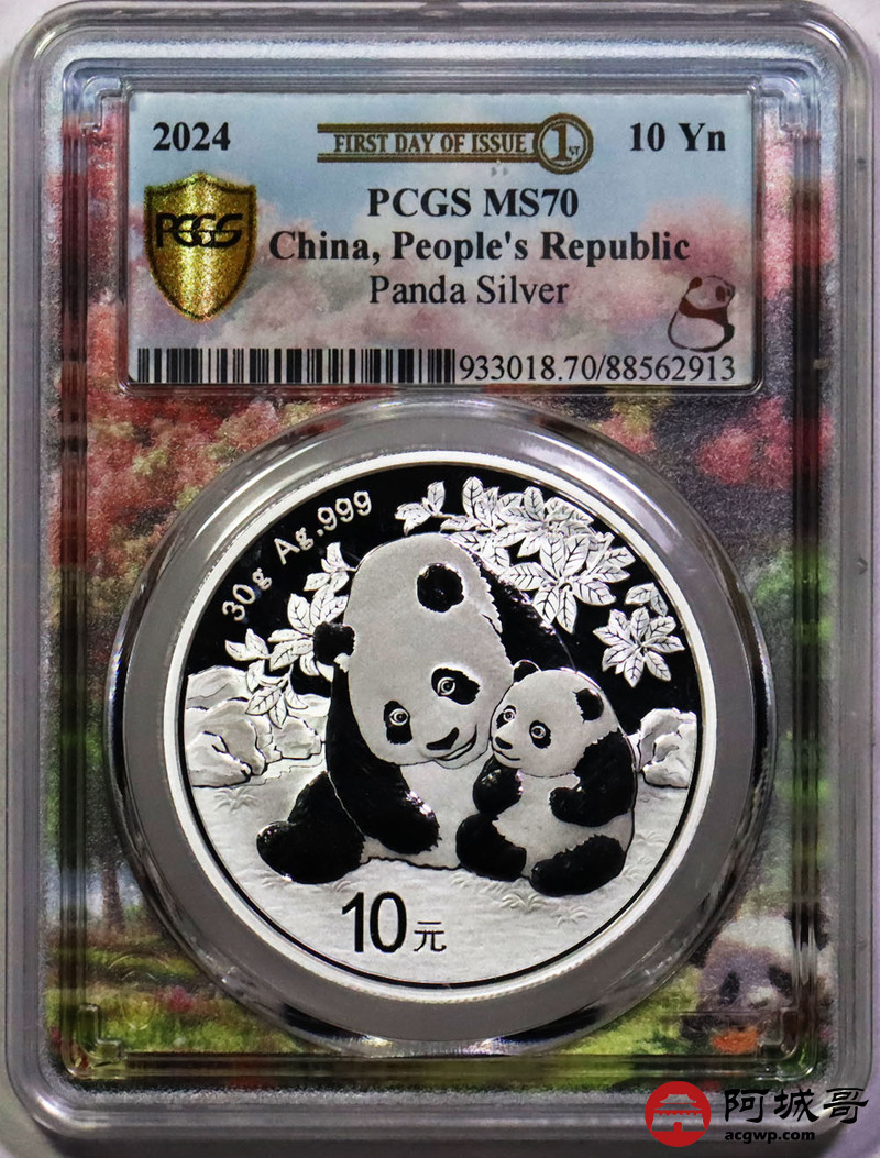 Lot:27 2024年熊猫币10元银币 初打标签 “亲情盛开” PCGS MS70