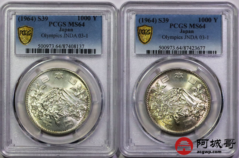 Lot:41 1964日本富士山1000元 PCGS MS64 两枚一组